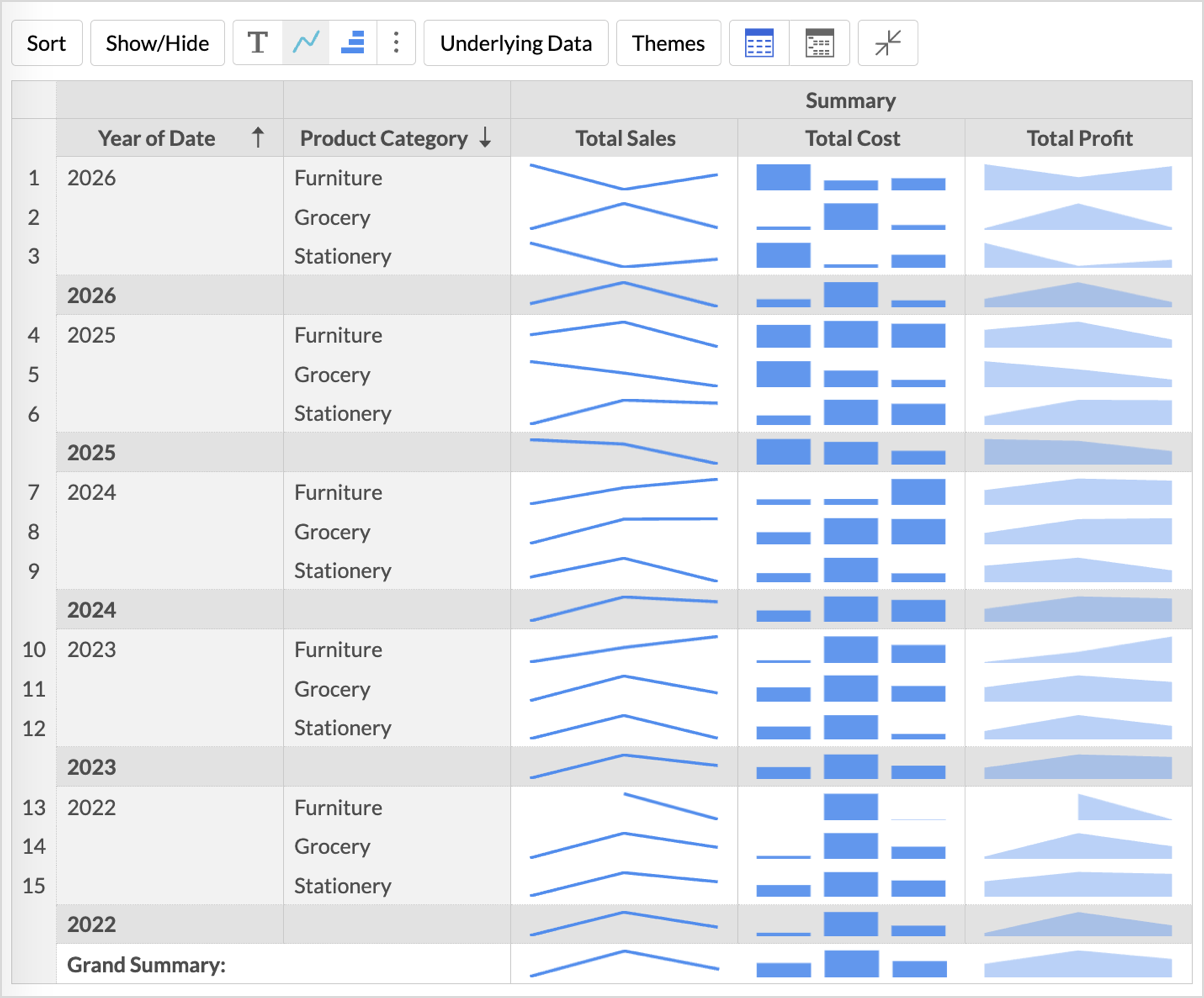 • Sparkline with Data - The data trend and the data are shown in the report.