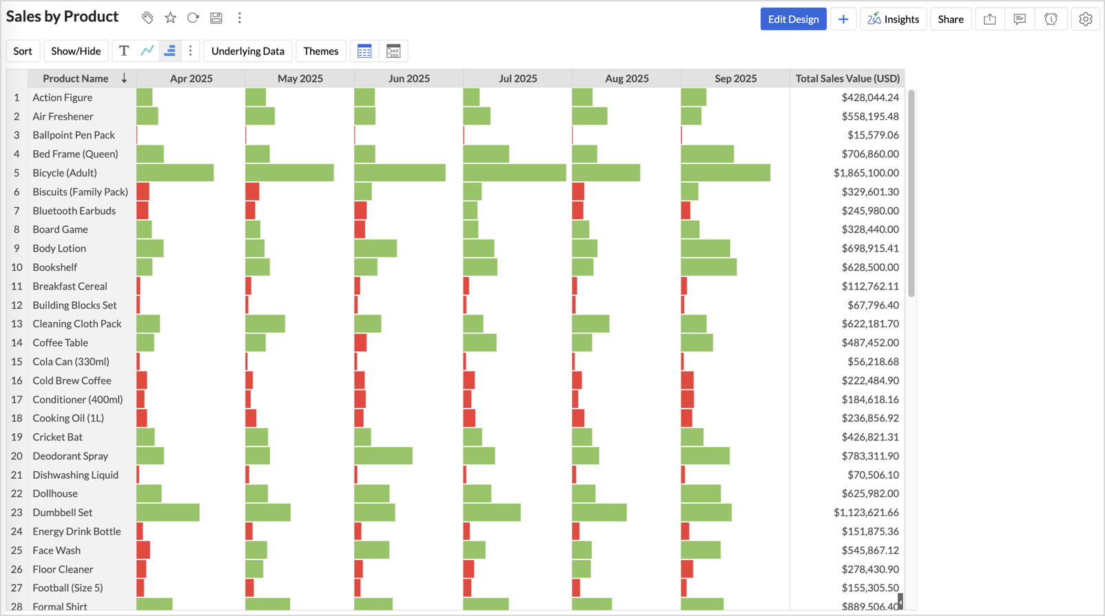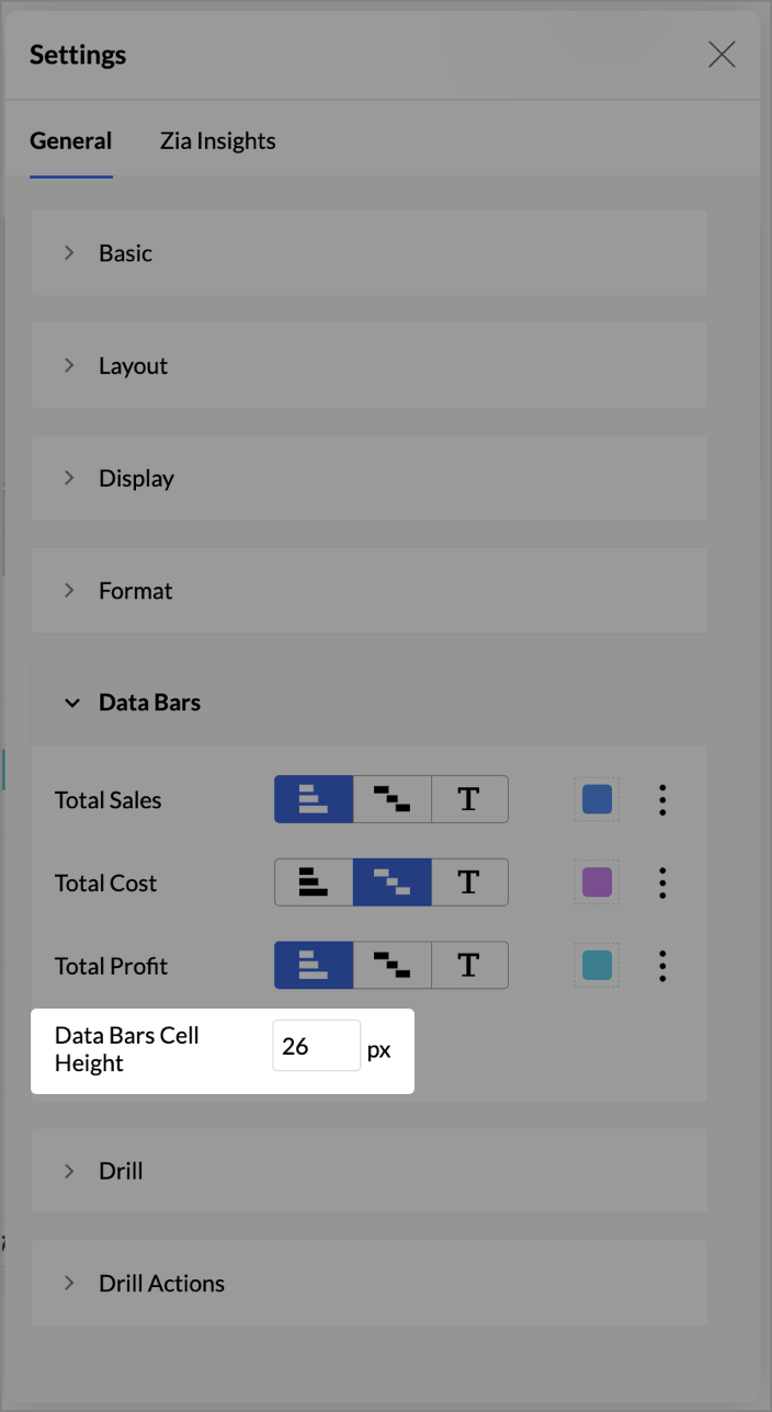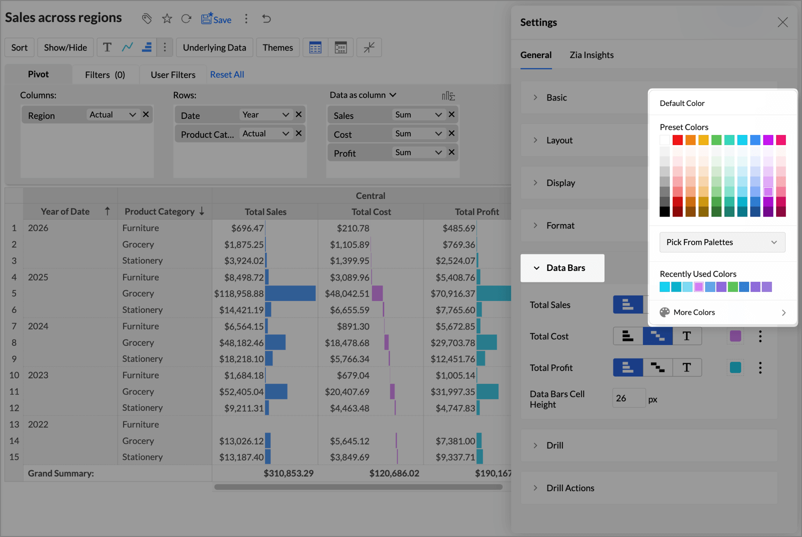 Zoho Analytics allows you to customize Data Bars appearance to match your data visualization needs better.