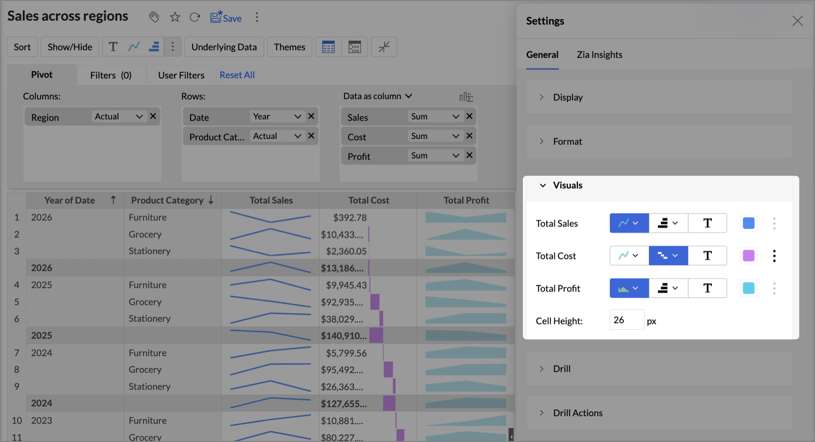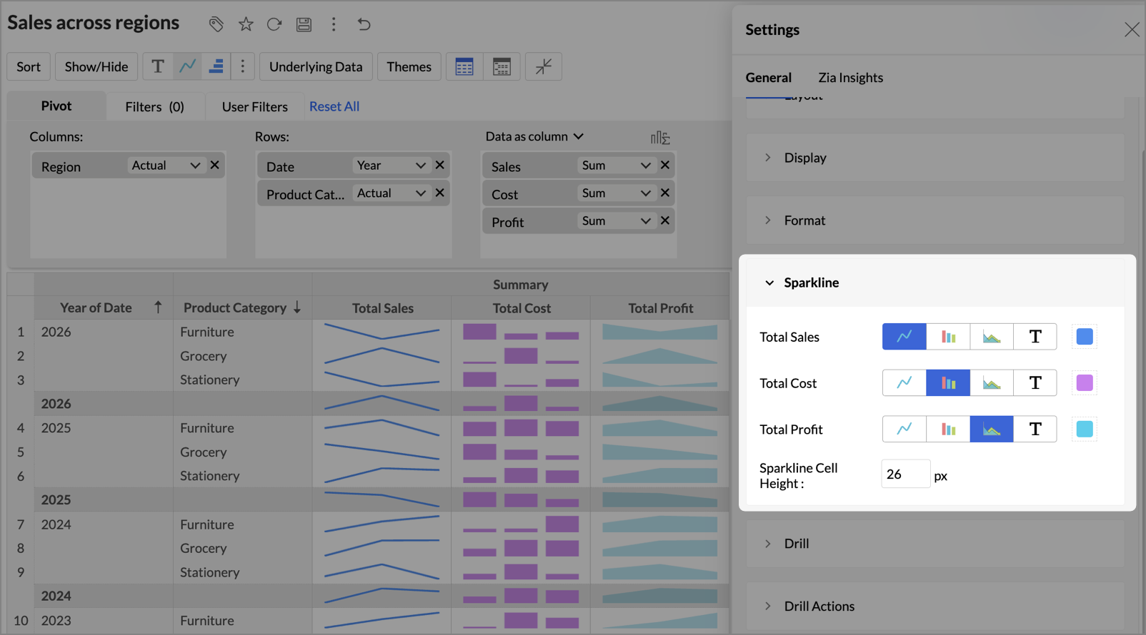 • Only Sparkline - The data trends of the selected columns alone are shown in the report.