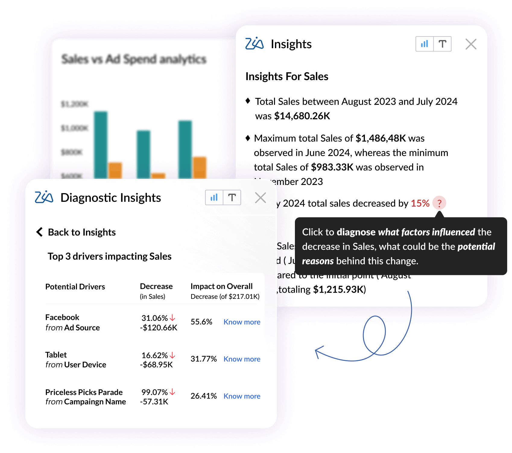 Zia, Zoho's AI layers, helps your team to uncover insights they might otherwise miss. Whether you need natural-language answers, predictive forecasts, anomaly alerts, or automated narrative summaries - Zia provides intelligence proactively.