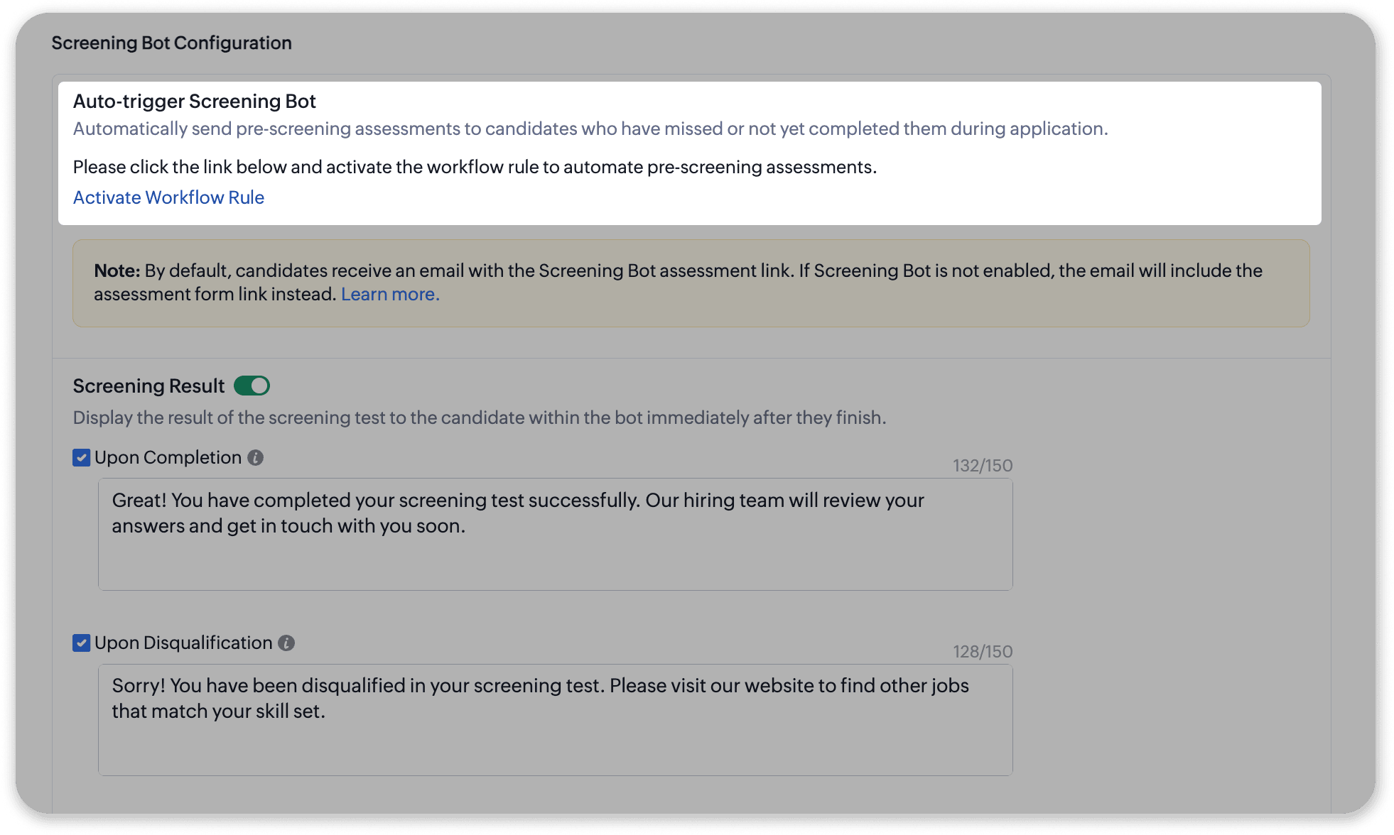 - Set up auto-triggers for assessments and review candidate profiles faster from applications.