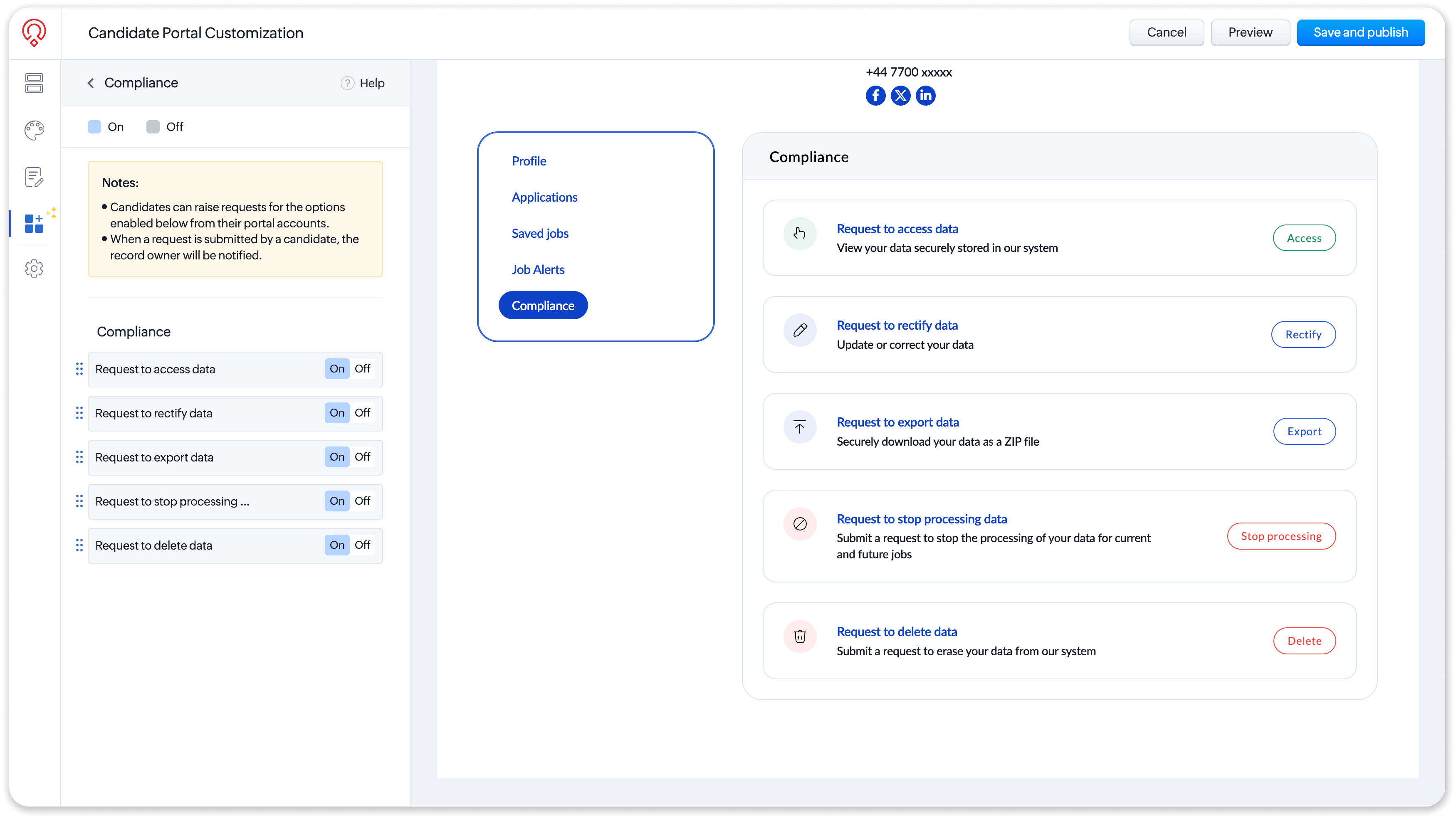 Candidates expect more control over their data. Handling requests to access, update, or delete candidate information often involves back and forth, along with manual work that takes up your team’s time.