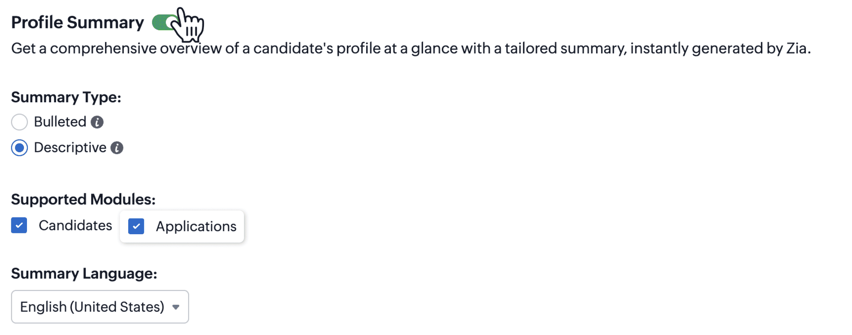 Zia candidate matching helps you identify the most relevant candidates for a role. With profile summaries, get instant candidate insights.