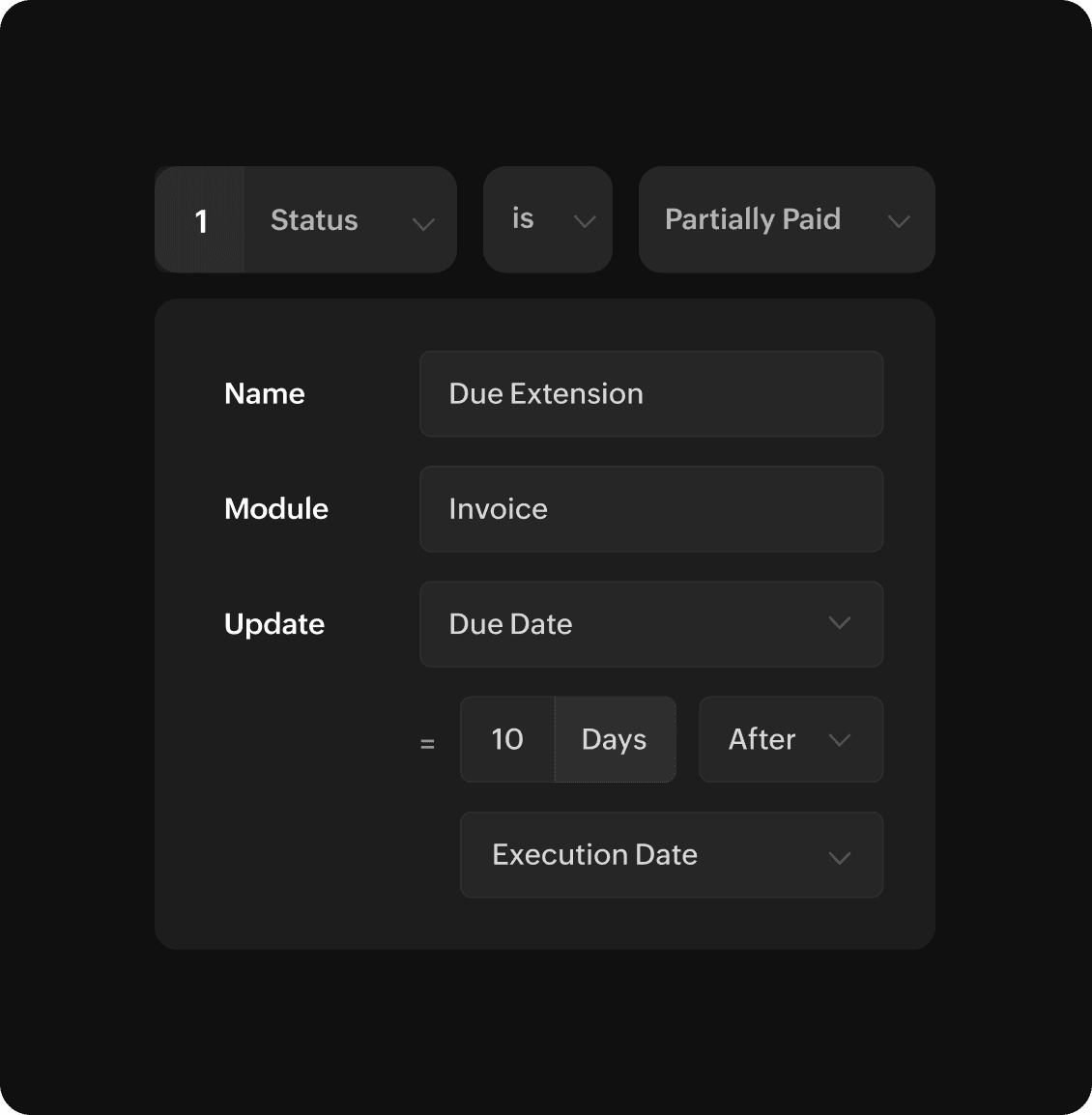 Update a field with a new value automatically. This could include extending the due date on an invoice or changing the expiry of a quote based on set criteria.