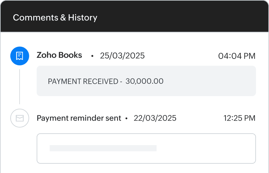Leave comments on transactions to add context or to ask questions. Collaborate with colleagues or communicate and negotiate with your customers and vendors using comments. The comments and history section further tracks changes made.