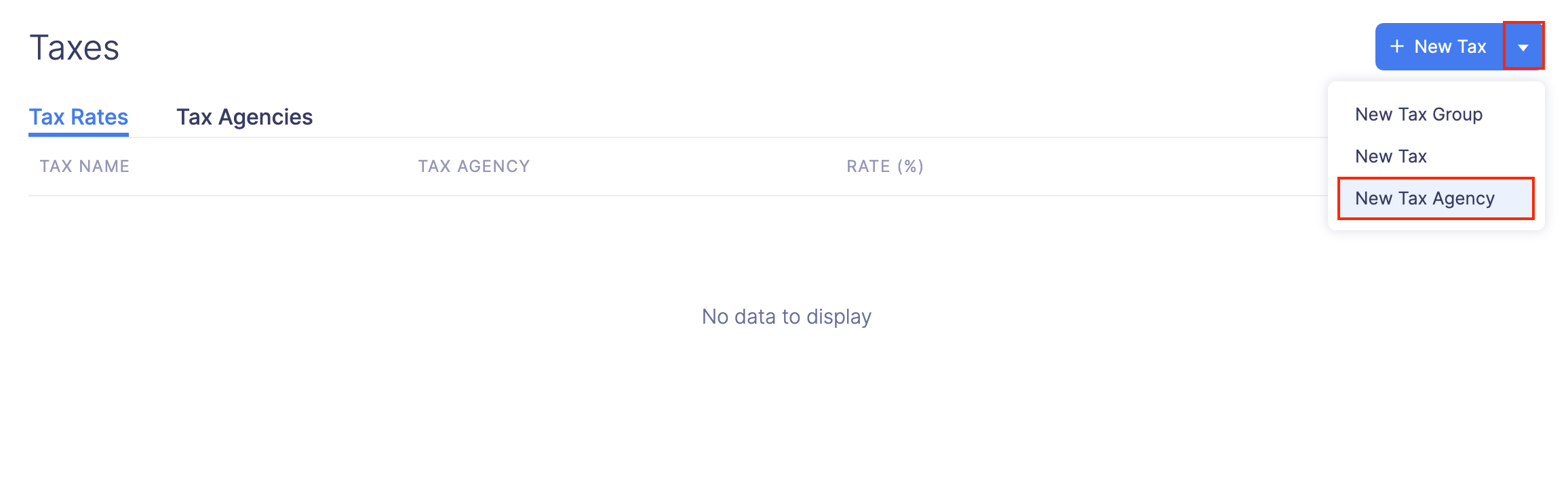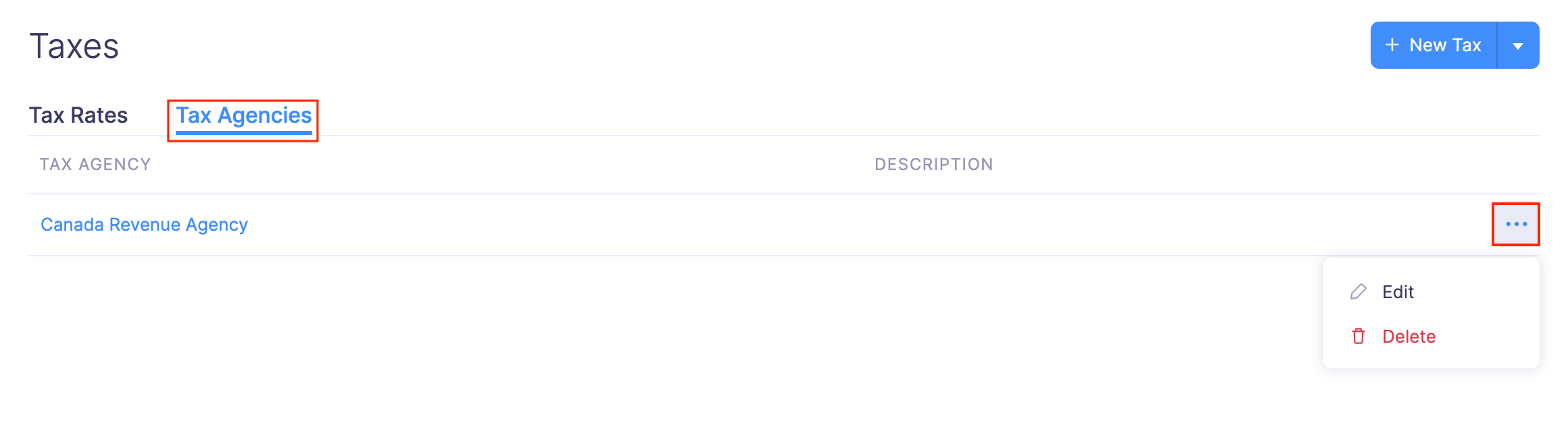 Note: If you want to edit a tax agency, navigate to the Tax Agencies tab > More icon at the right corner of the tax agency you want to edit > Edit > Make the necessary changes > Save.