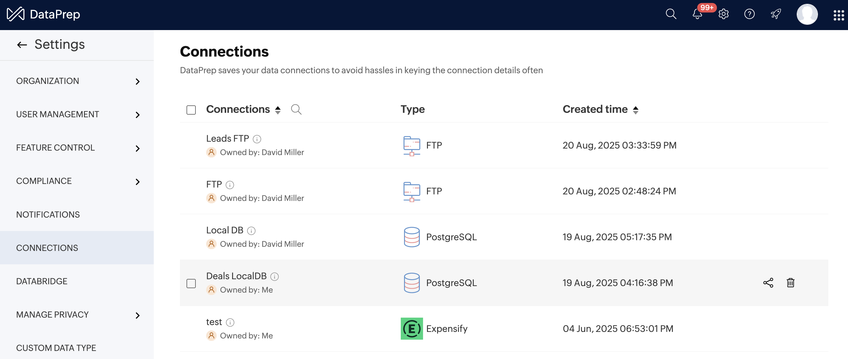 You can not only save Databridge connections but also now share them with other users in Zoho DataPrep. Learn more