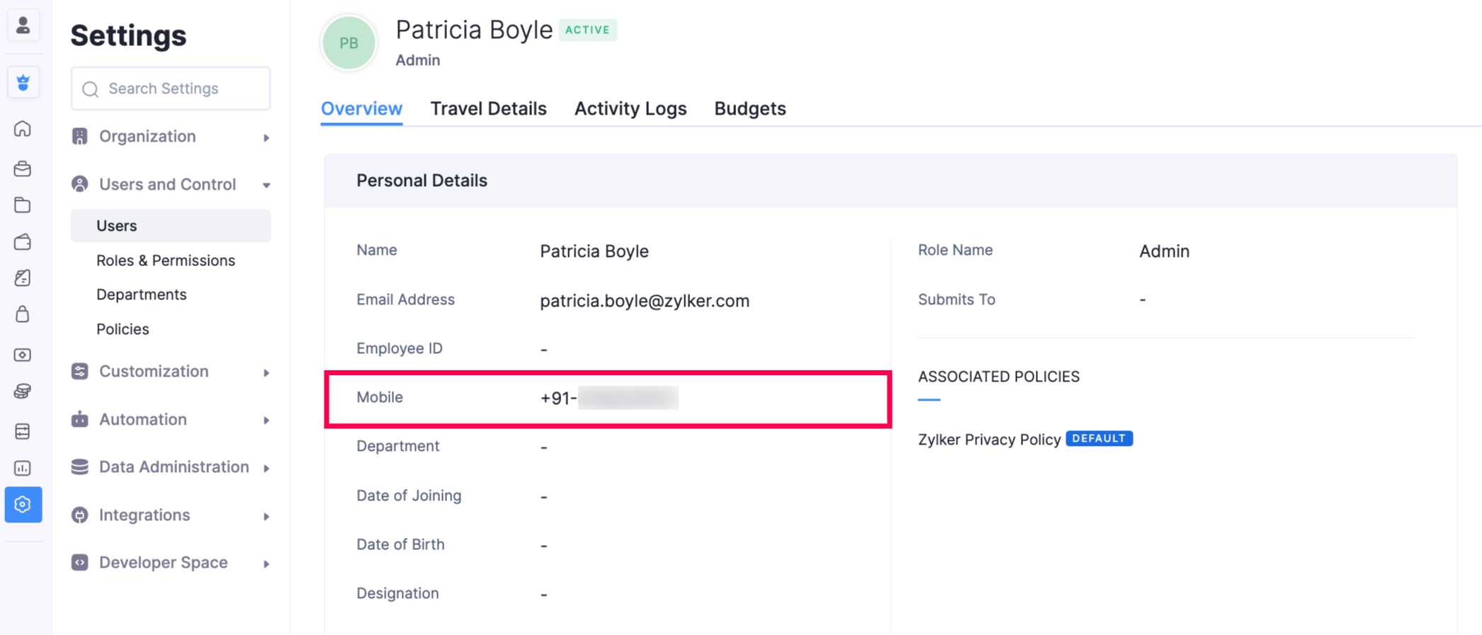 Note: Ensure that you’ve provided your users’ phone number with the appropriate country code (for example, +91-).
