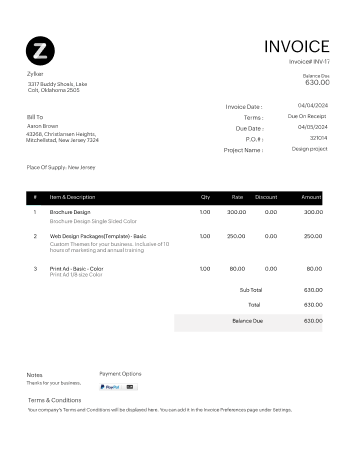 The invoice should clearly show the seller's name and contact information to ensure the customer can contact you for any queries.