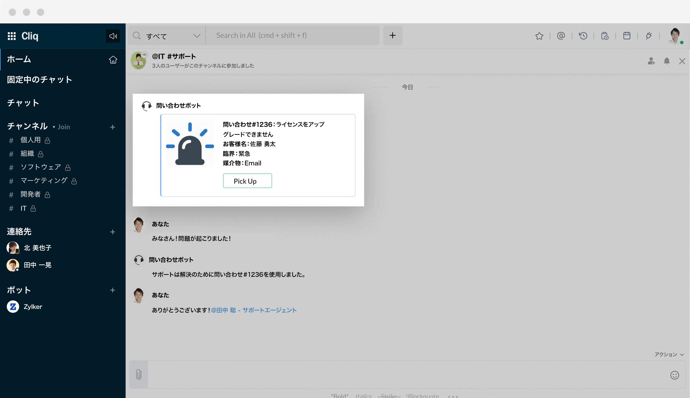 顧客は、メール、ライブチャット、電話、ソーシャルメディアなどのさまざまな媒体を通して不安を伝えてきます。Cliqはこれらの問い合わせを収集し、受信後すぐにチャットウィンドウで通知します。お客さまを迅速に認識し、返答することで、お客さまを重視していることを示すことができます。