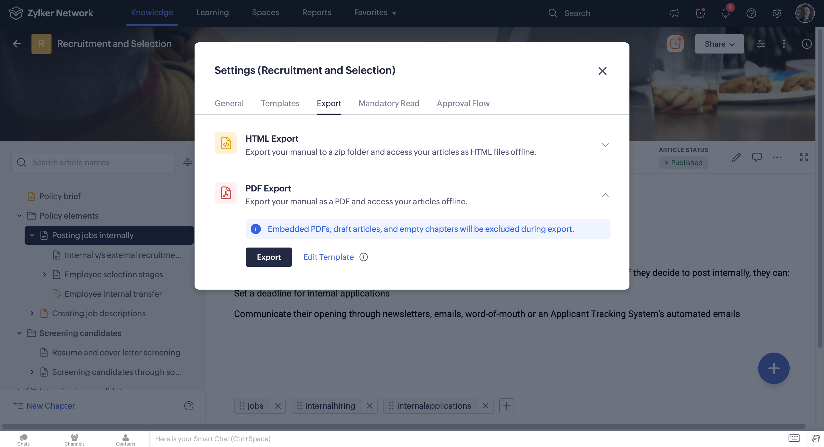 NewAllow or restrict the export of articles in a manual with article export policy settings.