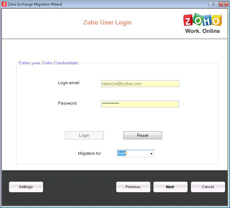 1. Launch the Wizard using the desktop shortcut or execute the file 'ZohoExchangeMigration.exe' from \Zoho\Zoho Exchange Migration\bin folder, under the installation path.