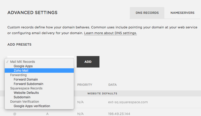 Zoho Mail provides multiple options to verify your domain ownership and configure email delivery in Squarespace.